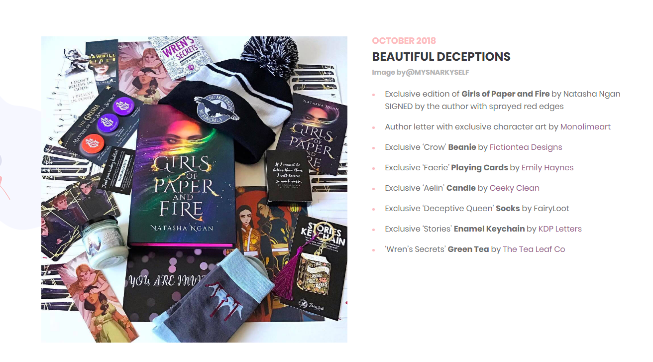 J'ai eu la chance de recevoir fin 2018 ce magnifique livre en VO dans une box littéraire que je conseille à tous, la Fairyloot. Elle était accompagnée de jolies goodies (qu'est-ce que j'aime les box anglophones pour ça ! Elles font toujours des chouettes trucs en produits dérivés) et pourtant, j'ai laissé ce titre traîner dans ma bibliothèque pendant de nombreux mois. Il aura fallu le confinement pour que je me lance et je regrette simplement une seule chose : avoir attendu aussi longtemps pour avoir ouvert ce roman. Mon tout premier coup de cœur de 2020.